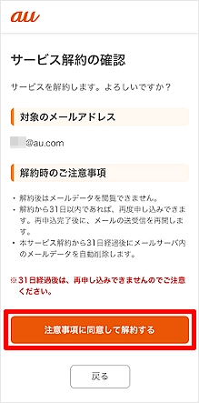 【auメール持ち運び】サービスを解約したい