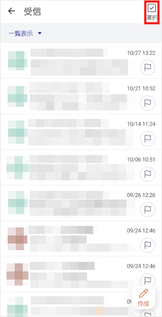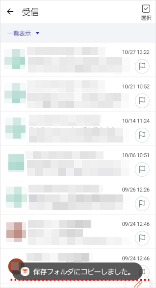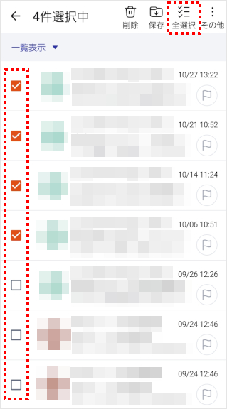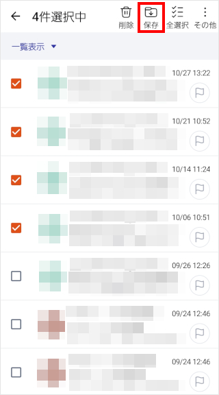 保存したいメールのチェックボックスをタップします。 一度にすべて保存したい場合は、[全選択]をタップします。