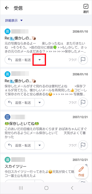 迷惑メールとして報告したいメールで[プルダウンアイコン]をタップします。