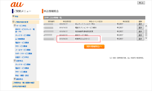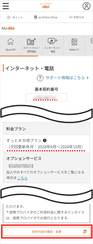 【auひかり】基本契約番号・更新月・契約日などの契約情報を確認したい
