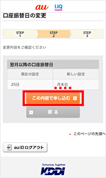 変更の手続きは、My au(Web)をご利用ください。