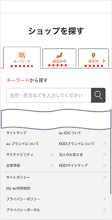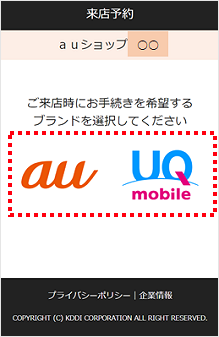 「au」または「UQ mobile」を選択します。 ※ブランドに応じた店舗を検索できるようになります。