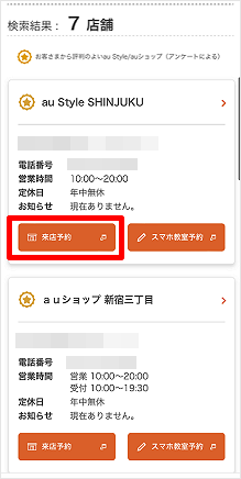 「ショップ検索・来店予約」ページにアクセスします。 「ショップ検索・来店予約」ページはこちら