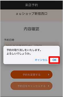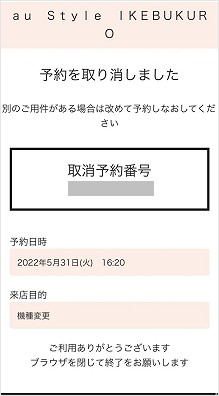 以上で、来店予約の取り消しは完了です。 ※予約取り消しが完了した旨のメールが届きます。