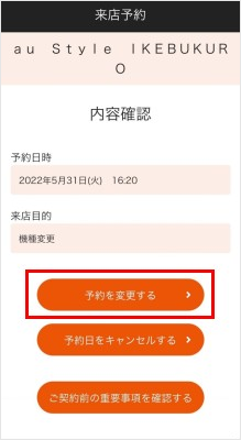 以上で、来店予約の変更は完了です。 ※予約完了メールが届きます。