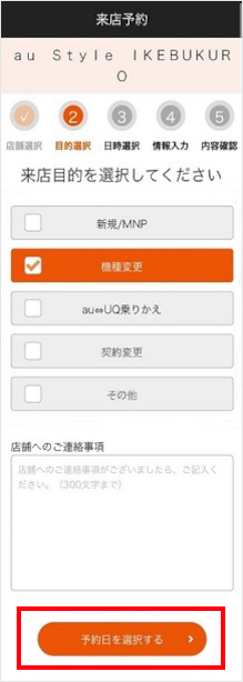 「ショップ検索・来店予約」ページで来店日・時間を予約することができます。