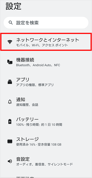 [ネットワークとインターネット]をタップします。