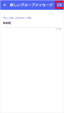 +メッセージアプリの「新しいグループメッセージ」作成画面でグループを作成し、複数人でやり取りできます。