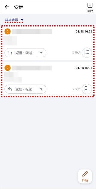 auメールアプリで受信したメールは、受信ボックス内で個別に選択して削除できます。