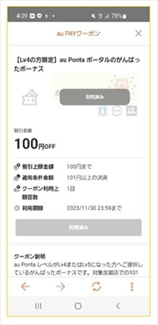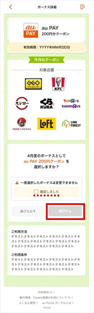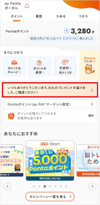 「au Ponta ポータル」から受け取りできます。