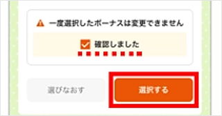 注意事項を確認の上、「確認しました」にチェックを入れ、[選択する]をタップします。