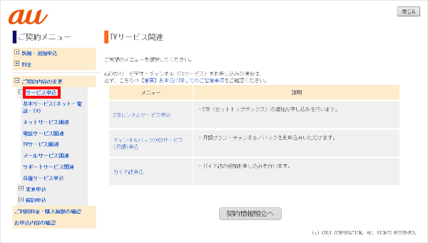これで、セットトップボックス(STB)レンタルサービス追加のお申し込みは完了です。