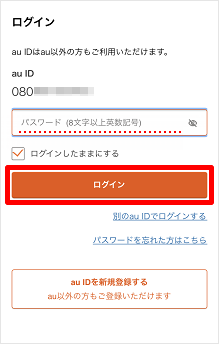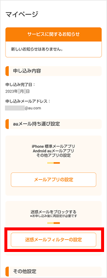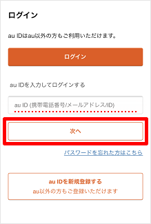 auメール持ち運びを利用している端末で、以下のページにアクセスします。