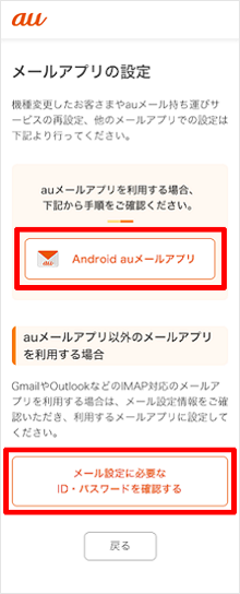 以降の操作方法は、以下ページの「STEP3:auメールアプリの設定方法」をご確認ください。