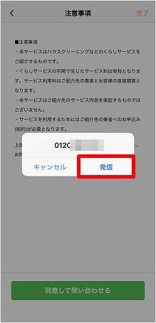 注意事項をご確認の上、[同意して問い合わせる]をタップします。