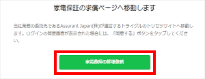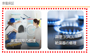 「家電保証」のメニューで、ご希望にあわせて[家電故障の修理]または[調理コンロ、給湯器の修理]をタップします。 ※ここでは例として、「家電故障の修理依頼」を選びます。
