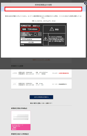 検索欄に修理する製品の型番を入力し、表示されたリストで該当する製品をタップします。