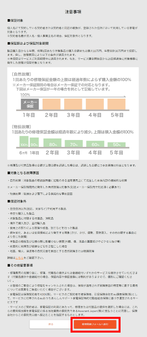 注意事項をご確認の上、[修理依頼フォームへ進む]をタップします。