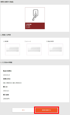 内容に間違いがないことをご確認の上、[修理を依頼する]をタップします。