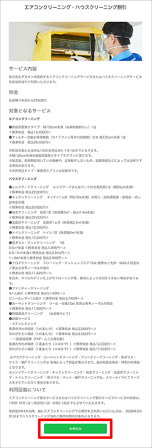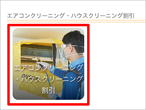 メニューの[エアコンクリーニング・ハウスクリーニング割引]をタップします。
