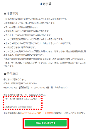 [発信]をタップすると、サポート窓口に繋がります。 サポート窓口で必要事項をご申告の上、エアコンクリーニングをご依頼ください。