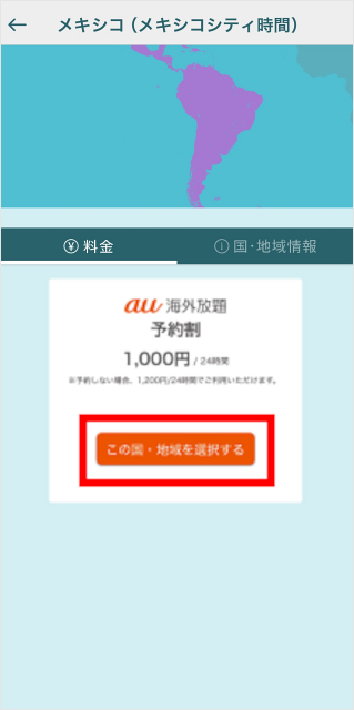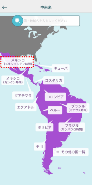 ※例として「メキシコ」のエリア(中南米)を選択します。