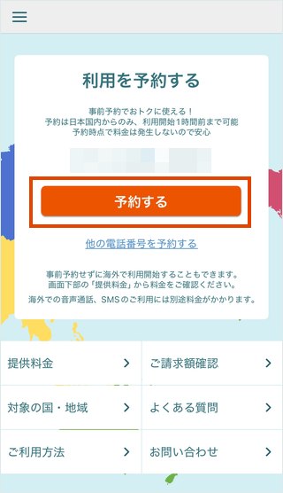 事前予約なしでご利用の場合は、海外渡航先に到着後、利用開始の操作が必要です。