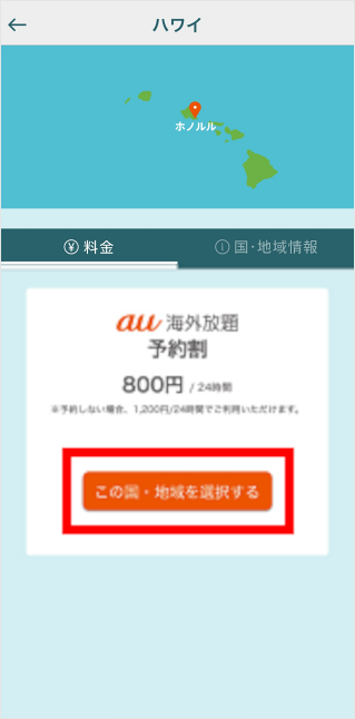 「au海外放題アプリ」で事前予約を行う際に、複数の国・地域の選択をすることができます。
