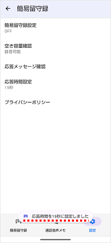 簡易留守録が作動するまでの時間(秒)を上下にスワイプ(スライド)して設定し、[完了]をタップします。