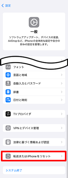 転送またはiPhoneをリセット]をタップします。