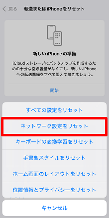 ネットワーク設定をリセット]をタップします。