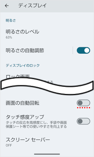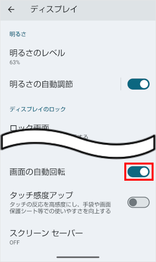 [画面の自動回転]のスイッチをタップしてオフにします。