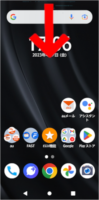 ステータスバー(画面上部)付近に指を置き、下にスライドします。