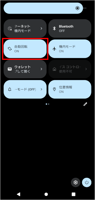 「画面の自動回転」のスイッチがオフになります。 以上で操作は完了です。