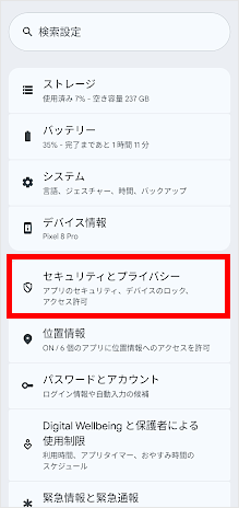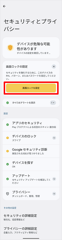 設定アプリで画面ロックの設定・変更・解除ができます。