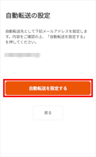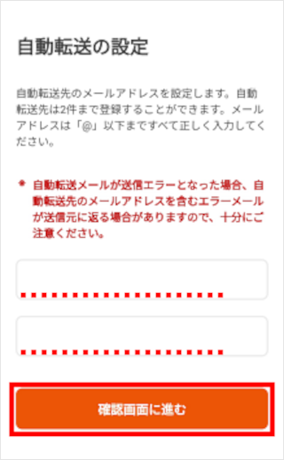 自動転送先のメールアドレスを入力し、[確認画面に進む]をタップします。