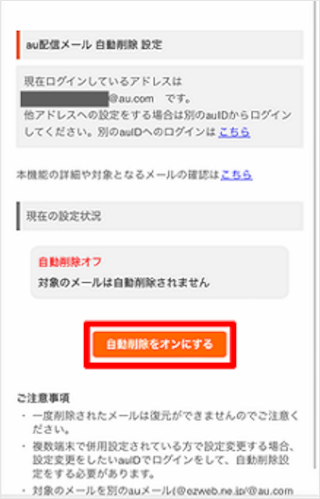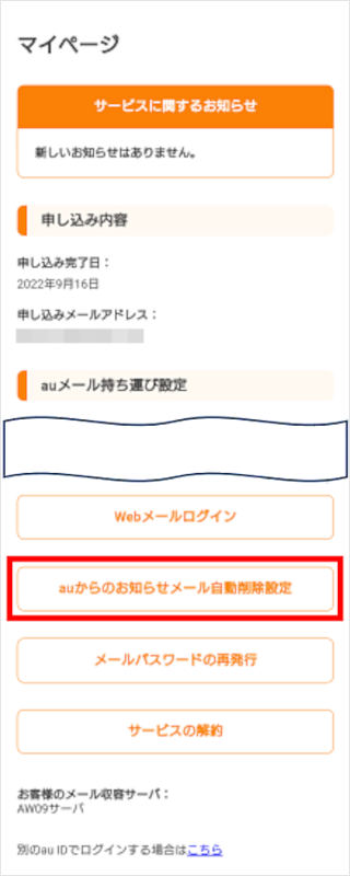 auからのお知らせメールは、auメール持ち運びの「マイページ」で自動削除の設定ができます。