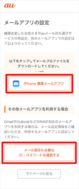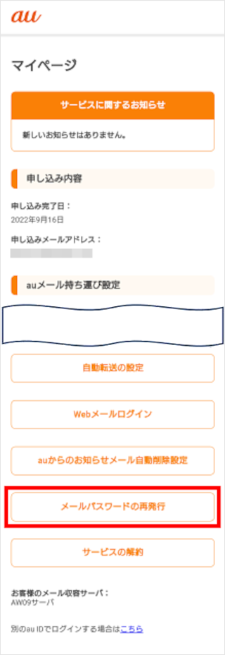 auメール持ち運びサービスのマイページにアクセスすることでメールパスワードを再発行できます。