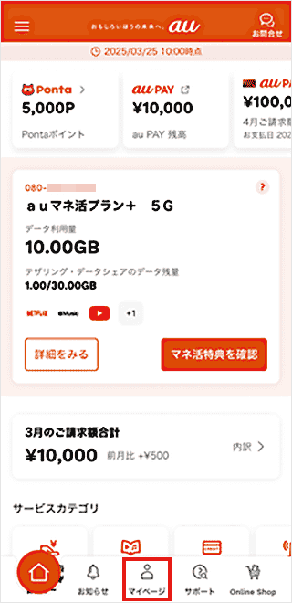 [My au アプリ]を起動し、au ID/パスワードでログインします。