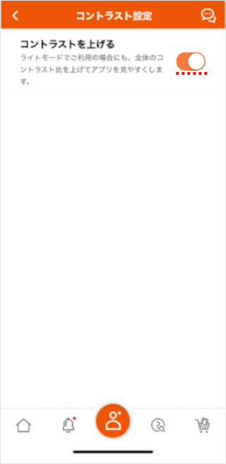 [コントラストを上げる]のスイッチをタップしてオンにします。