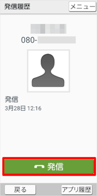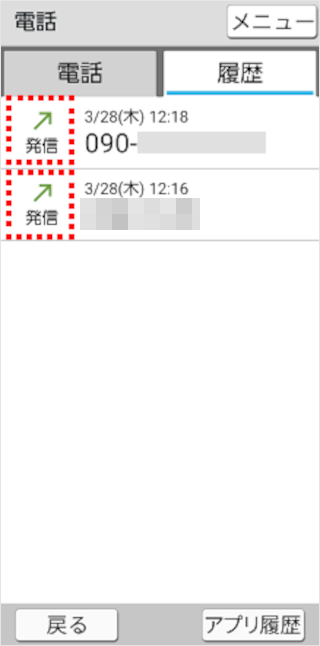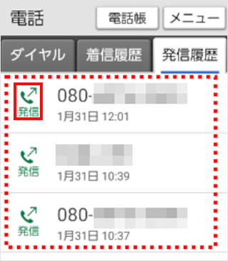 電話アプリの着信履歴または発信履歴でかけたい相手を選んで、電話をかけることができます。