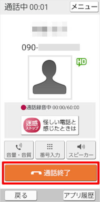 通話画面で[通話終了]をタップすると、電話を切ることができます。 ※BASIO active3 KYG04の場合は、[電話を切る]をタップしてください。