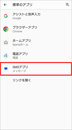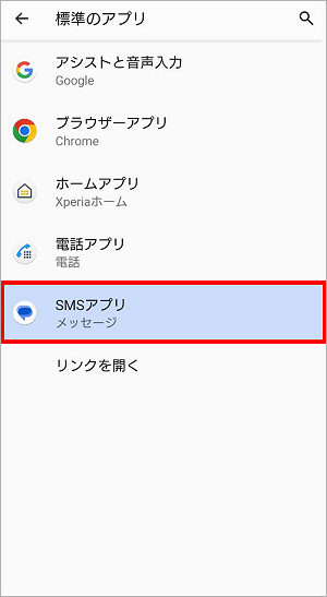 再度[SMSアプリ]をタップします。 ※機種やOSバージョンによって、この手順が不要な場合があります。