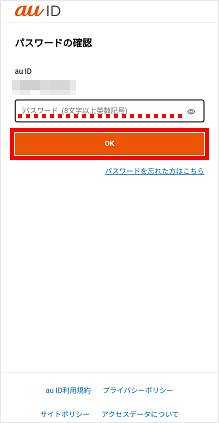 au ID/パスワードを入力し、[OK]をタップします。