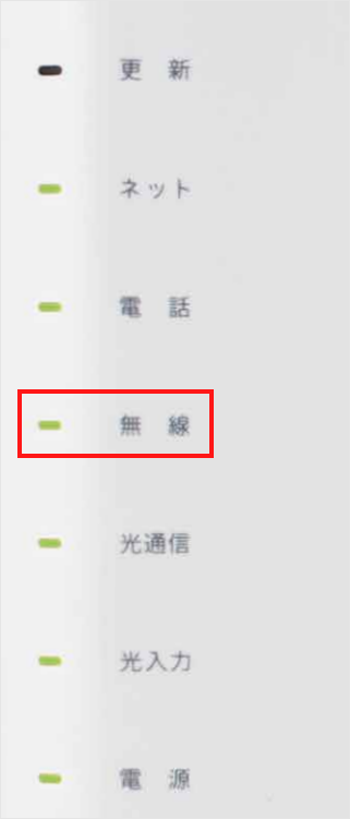 ホームゲートウェイ(HGW)前面の「無線LANランプ」がグリーン点灯していることを確認します。