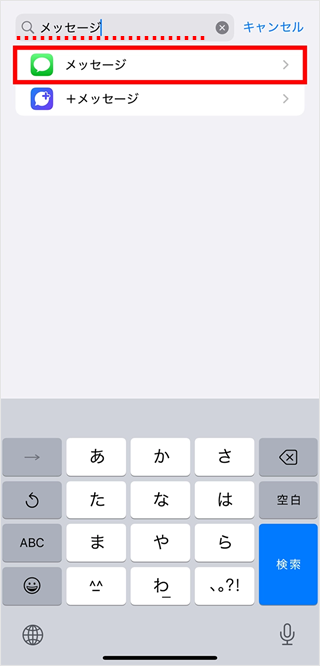 「メッセージ」と入力して検索し、[メッセージ]をタップします。