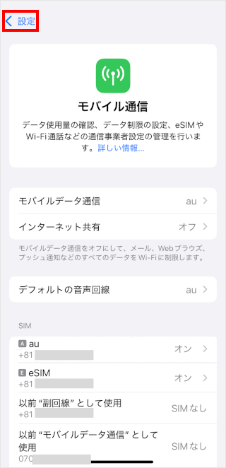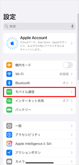 [モバイル通信]をタップします。