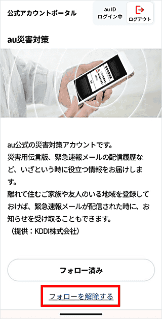 [フォローを解除する]をタップします。 以上で、公式アカウントの利用が停止されます。 ※一部のアカウントでは、フォロー解除後も一定期間メッセージが届くことがあります。
