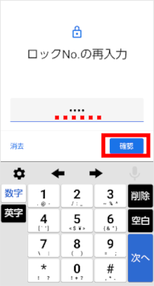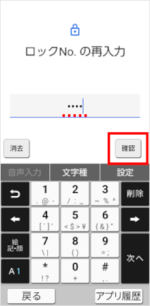 再度同じ「ロックNo.」を入力し、[確認]をタップします。