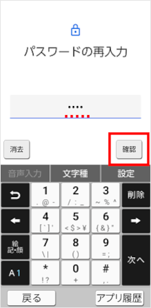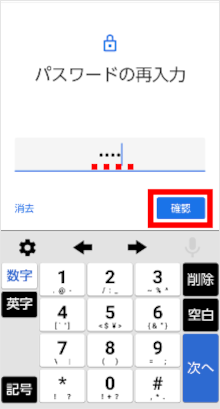 再度同じパスワードを入力し、[確認]をタップします。
